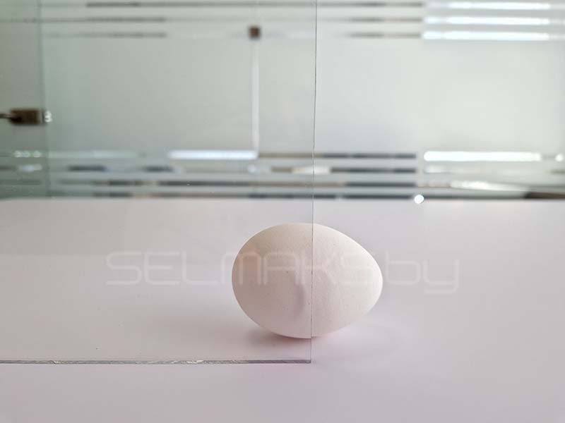 Самой важной характеристикой монолитного поликарбоната можно назвать прочность. Материал нельзя разбить, очень трудно сломать, листы монолитного поликарбоната не крошатся, не бьются, не трескаются от ударов. Внешне лист монолитного поликарбоната выглядит как обычное стекло.