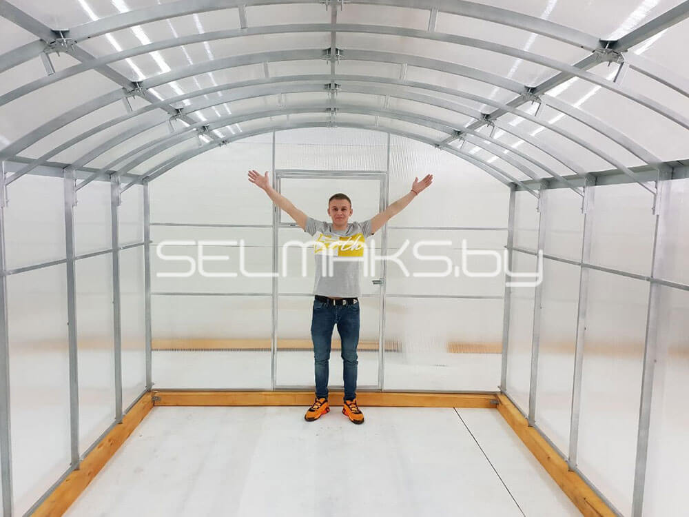 б) Для теплиц есть около 18 видов поликарбоната, и чем больше он весит, тем он дороже. Обычно с теплицей спрашивают поликарбонат 4мм, но нужно понимать, что 4мм есть 10 видов. Все эти виды отличаются по весу, например лист с удельным весом 0,42 кг/м.кв весит 5,3 кг, следующий вид весит 5,8 кг, следующий – 6,2кг, дальше – 6,43кг……..и так до листа, который весит 10 кг. Когда Вы спрашиваете поликарбонат 4мм и больше ничего не говорите, то Вы должны понимать что Вам теплицу скомплектуют самым дешевым поликарбонатом из линейки 4мм. Например, мы всем своим знакомым советуем брать поликарбонат для теплицы с весом не менее 7,56 кг. Лист поликарбоната с маленьким весом будет слабый, он быстрее выйдет из строя.