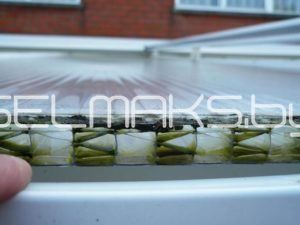 Поликарбонат обязательно должен быть защищен от УФ (ультрафиолетового) излучения. Не будем вдаваться в подробности, это невозможно проверить без спец оборудования. Просто запомните, слой УФ - ОБЯЗАТЕЛЕН! Без этого слоя листы через 1-2 сезона пожелтеют, потрескаются и рассыпятся.